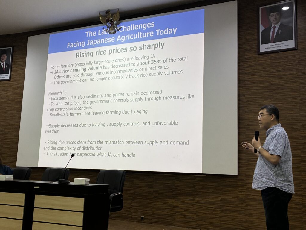 2026年2月3日~6日までのインドネシア・バリ島訪問の際には,中山間地域のTimbul地域への訪問に加えて,デンパサール市内にあるDwijendra大学とWarmadewa大学にて講演をする機会をいただきました。Dwijendra大学では主に教員の方々を対象に,Warmadewa大学では農学科やフードシステム学科の学生を対象に話をしてきました。内容はいずれも「日本の農協」についてです。農協については落合は専門ではなかったのですが,なぜか落合が話をすることになりました。とくにWarmadewa大学の学生は,落合のめちゃくちゃな英語にもかかわらず,勇気をもって質問をしてくれました。大変ありがたかったです。