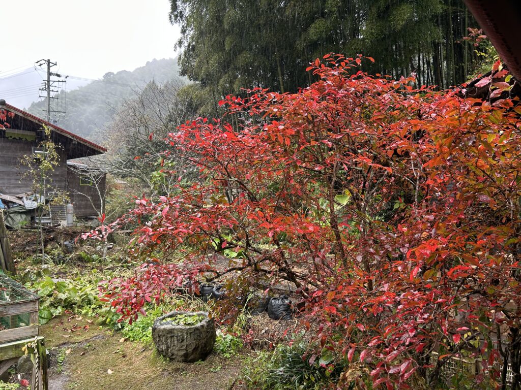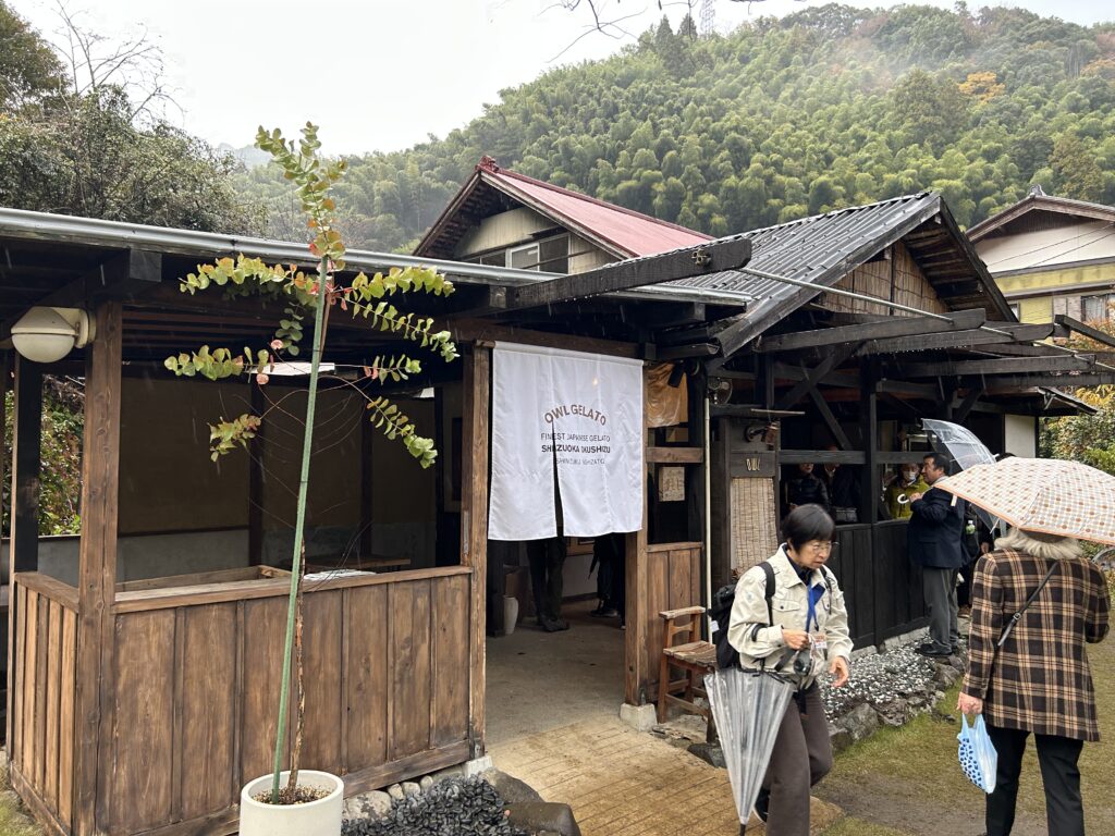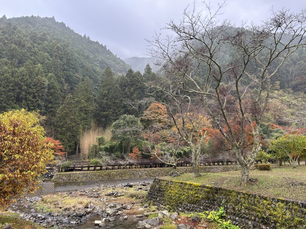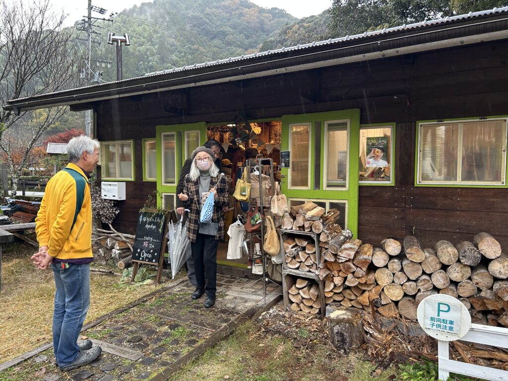 当日は生憎の雨でしたが,紅葉がとてもきれいでした。地域には移住された方が出しているおしゃれなジェラート屋さんや小物屋さんがありました。その他多くの施設があったのですが,訪問のメインのイベントは,30年以上前に移住し,地域づくりのNPO法人をたちあげた方のお話をうかがうことでした。来年からは地域の自治会長も任されるまでに地域の方々からの信頼も得られているとのことでした。